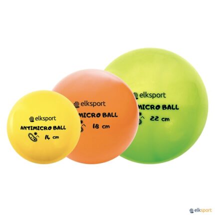 Estas bolas contam com um tratamento antimicrobiano para impedir a propagação de bactérias e germes. Esta proteção antimicrobiana revolucionou a limpeza e a higiene dos produtos, tornando-se a maior aliada na luta contra microrganismos nocivos. Para além de proporcionarem segurança na sua utilização, ajudam a reduzir o tempo de limpeza para os utilizadores, permitindo maximizar o tempo de uso e minimizar as transições entre aulas. As bolas Antimicro Ball são fabricadas através de um processo rotacional que garante que a sua superfície não apresente costuras, nem se rompa ou descasque. · 3 Diâmetros disponíveis: 14 cm / 18 cm / 22 cm. Disponíveis individualmente ou em conjuntos de 6 bolas em 6 cores (amarelo, azul, laranja, vermelho, verde e violeta) a um preço mais económico.