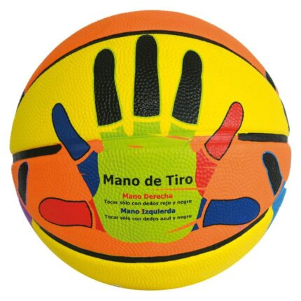 Bola de basquetebol de iniciação. Esta bola está entre a basquetebol tradicional e a bola de basquetebol soft. Pode ser usada para iniciar o basquetebol em idades precoces, especialmente para trabalhar, o drible, o passe e todas as habilidades com bola. Fabricada com uma técnica de rotação, que transforma o vinil líquido numa bola insuflável sem costuras, fazendo com que esta seja suave, mas rija o suficiente para um bom drible e uma excelente manipulação. A sua superfície rugosa permite uma boa aderência. Tamanho T5. Vendida à unidade ou em lote de 6 em 6 cores diferentes : laranja, azul, amarelo, verde, violeta e vermelho.