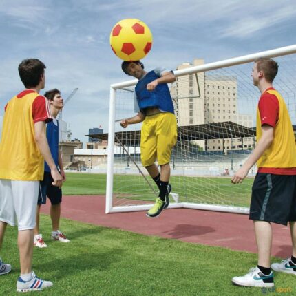 Bola de futebol leve, fácil de chutar e realmente resistente. Ideal para jogar na praia, no campo ou no recinto desportivo. Revestimento em 100% nylon e câmara interior em látex. Inclui uma câmara ar com válvula. · Diâmetro: 48 cm · Peso: 140 g