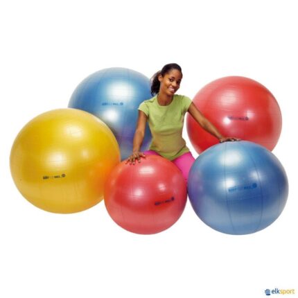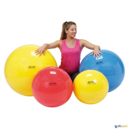 A bola gigante Gymnic fabricada em PVC, tem uma superfície estriada e pode ser utilizada tanto em contextos recreativos como educativos. Para além dos exercícios típicos de ginástica, também podem ser realizados exercícios para corrigir más posturas.. · 5 Diâmetros: 55 cm (vermelha) / 75 cm (amarela) / 95 cm (azul) / 120 cm (vermelha) / 150 cm (laranja). Disponíveis tampas de substituição e extrator de tampas metálico