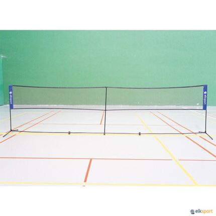 Rede portátil com estrutura em tubos de encaixe em ferro, ajustável em comprimento (3 m ou 6 m) e em altura (76,2 cm ou 1,5 m), é montada e desmontada em poucos minutos.  Convém para mini ténis ou mini badminton. Com saco para armazenamento e transporte. Comprimento: ajustável 3 m ou 6 m (Incluí 2 redes)