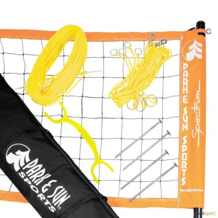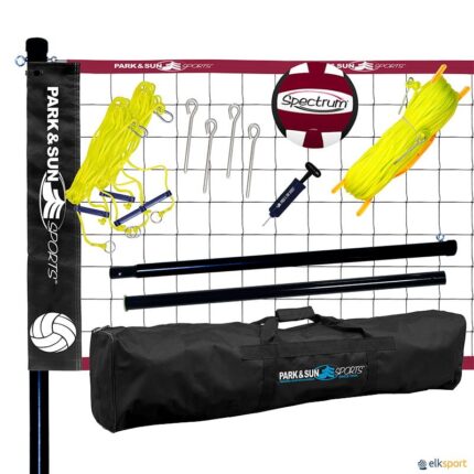 Conjunto fabricado com componentes de qualidade e fácil de instalar. Poste de 3 peças, em que a seçcão superior é de alumínio e telescópica, sobre 2 secções inferiores de aço. Facilmente ajustável a 3 alturas : homens (2,43 m), mulheres (2,24 m) e misto (2,34 m). O conjunto Spiker Pro incluí: • Par de postes de 3 peças com parte superior de alumínio e base de aço. • Rede de 9,75 x 0,9 m com banda superior e inferior de 5 cm e clips de fixação. • Tensor de rede duplo. • Estacas de fixação de 25 cm. • Corda de delimitação do terreno de alta visibilidade, com anilhas de fixação nos ângulos. • Suporte enrolador de rede. • 1 bola de voleibol Soft Touch. • 1 Bomba manual. • 1 Saco de transporte e armazenamento