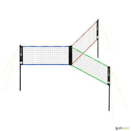 Este sistema de redes traz uma nova dimensão ao voleibol. Jogam 3 equipas em simultâneo com redes em 3 direções. Permite envolver mais jogadores (1 a 3 em cada secção), manter mais distancia entre cada jogador, descobrir jogadas novas, criar uma experiência desportiva divertidas, colorida e inesquecível. Para utilizar na relva ou areia. Cada sistema TriBall vem equipado com materiais de qualidade. O conjunto TriBall é composto de: 3 postes telescópicos em aço (ajustáveis em 3 alturas). 1 rede colorida tripla de 2,44 m. 1 banda de delimitação. 1 bola de voleibol Soft Touch. 1 bomba de encher. 1 saco de transporte e armazenamento.