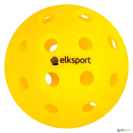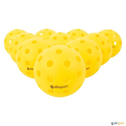 Bola de pickleball para competição, desenhada para jogos no exterior graças ao seu maior número de perfurações (40 furos em cada bola). Estes furos são mais pequenos do que os das bolas de interior, proporcionando uma resistência ideal ao vento para jogos ao ar livre. A sua construção com material de alta qualidade mantém a forma da bola após cada pancada. · Cor: amarelo. · Perfurações: 40. · Diâmetro: 7,3 cm. · Peso: 26 g. · Altura do ressalto: 86-96 cm. · Dureza: aproximadamente 50D. Disponível à unidade ou em conjuntos de 10 bolas a um preço mais económico.