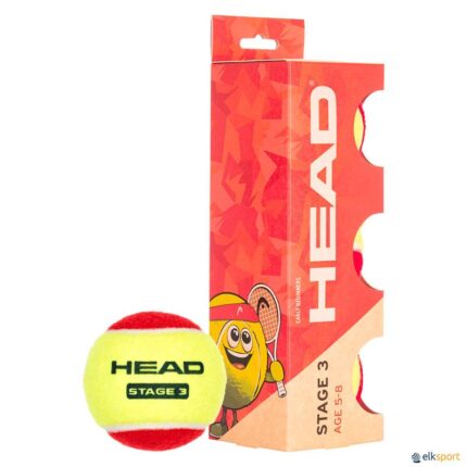 Caixa com 3 bolas de iniciação ao ténis Head Stage 3 sem pressão, perfeita para crianças que estão a começar a jogar. É 75% mais lenta do que uma bola de ténis normal, permitindo aprender de forma fácil e divertida. Além disso, os dois tons de cor — vermelho e amarelo — do feltro ajudam as crianças a ver melhor a bola. · Idade: 5-8 anos.