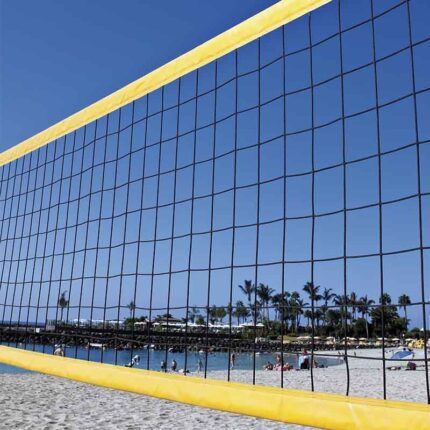 As nossas redes de ténis de praia são fabricadas em polipropileno e incluem uma fita na parte superior ou em todo o perímetro da rede. · Cor da rede: preta. · Cinta só na parte superior ou em todo o perímetro, disponíveis em 3 cores: amarelo / azul / branco. · Medidas da rede: 8,6 x 1 m (com corda adicional de 13,7 m). · Espessura: 3 mm.