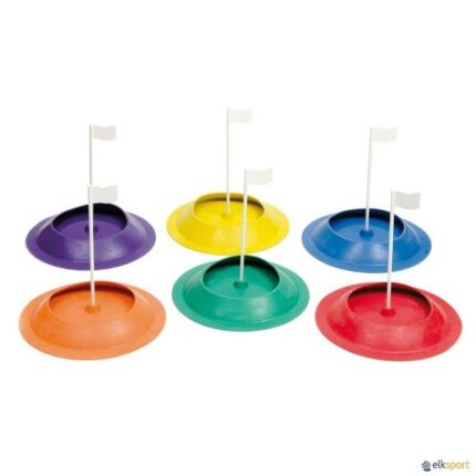 Estes buracos de golfe simulam um verdadeiro jogo de putt, oferecendo inúmeras possibilidades de atividade! Fabricados em borracha macia, permitem montar circuitos de minigolfe ou praticar putt com segurança, em qualquer espaço – seja no interior ou exterior. Vendido à unidade ou por lote de 6 buracos (ø 10 cm) e 6 bandeiras desmontáveis para identificação da estação, a um preço mais económico. Recomendamos a sua utilização com a: BOLA DE GOLF INICIAÇÃO