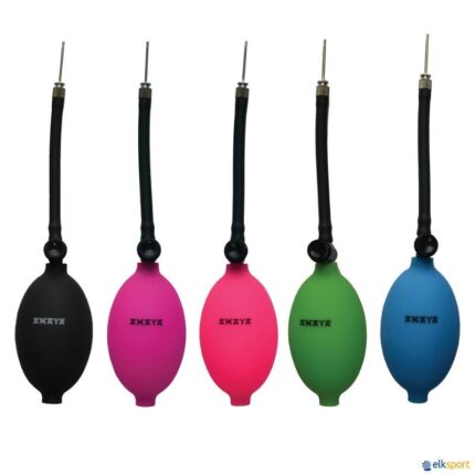 Bomba para bolas de ginástica rítmica fabricada em plástico macio. Girando o tubo flexível, aperta-se bem para que o ar entre e não saia ao encher ; ou alarga-se para que o ar saia para vazar.