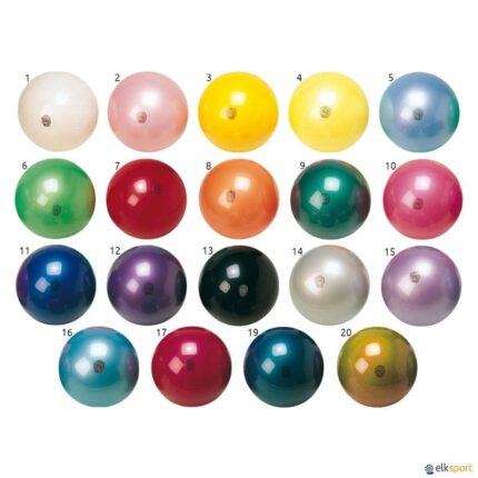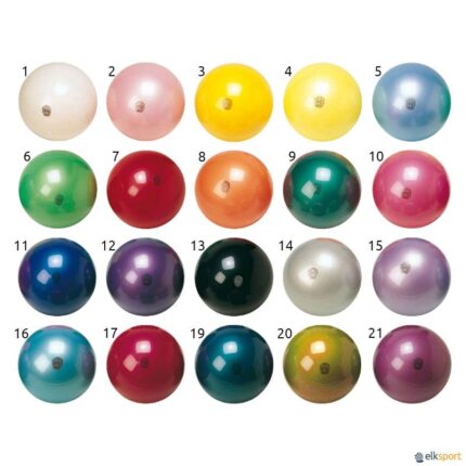 Bola de ginástica rítmica com cores atrativas e luminosas, indicada para a iniciação e treino infantil. Tamanho: 16-17 cm. de Ø. Peso: 310 g. Disponível em 20 Cores: branco (1) / rosa claro (2) / amarelo (3) / amarelo-limão (4) / azul celeste (5) / verde claro (6) / vermelho (7) / laranja (8) / verde (9) / fúcsia (10) / azul royal (11) / roxo (12) / preto (13) / cinza/prata (14) / lilás (15) / turquesa (16) / cereja (17) / azul mandarim (19) / ouro (20) / cardeal (21).