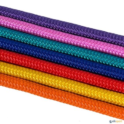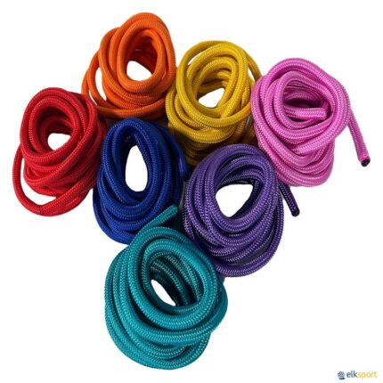 Corda para ginástica rítmica fabricada em polipropileno, indicada tanto para treino como para competição. · Comprimento: 3 m · Peso: 150 g · 7 Cores disponíveis: Amarelo / Azul / violeta / Laranja / Vermelho / Rosa / Verde