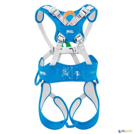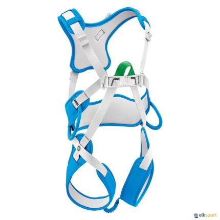 Arnês completo que garante que as crianças deem seus primeiros passos na escalada de forma segura. Fácil de ajustar e colocar. Não necessita de um conector para fechar e seu sistema de ajuste é seguro e difícil de manipular para a criança. Com estrutura acolchoada e ponto de encordoamento frontal reforçado. Cumpre com as normas CE EN 12277 tipo B, UKCA e UIAA. Peso do arnês: 410 g. Peso máximo criança: menos de 30 kg. Contorno da cintura: 58-70 cm. Contorno da coxa: 32-40 cm.