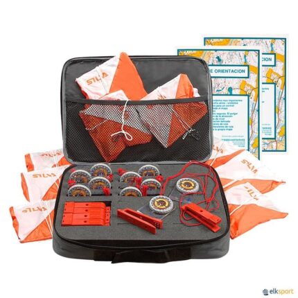 Mala pedagógica de orientação composta por: · 10 bússolas Silva Field · 10 balizas de treino (15 x 15 cm) · 10 pinças de controlo · 2 cadernos de orientação básica (em espanhol) · 1 mala para armazenar todo o material