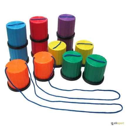 Mini-andas infantis, em plástico, muito resistente, com base antiderrapante. Vendido à unidade ou conjunto de 6 pares de mini-andas em 6 cores: vermelho, verde, azul, amarelo, violeta e laranja. Comprimento da corda: 60 cm. Tamanho da base: 10,5 cm. de Ø. Altura: 12 cm.