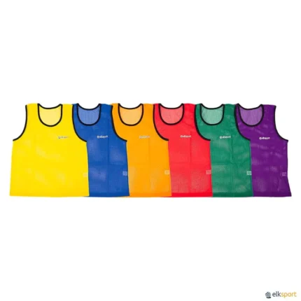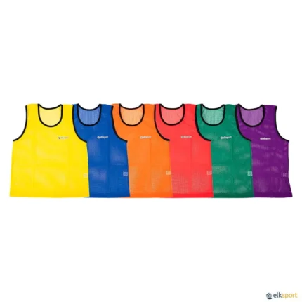Fabricado em malha de poliéster de gramagem média, mas muito resistente. Os orifícios da malha, são maiores que nos outros coletes, que permite uma maior ventilação e máximo conforto. Fácil de vestir e despir. Tanto a gola como as mangas possuem uma bainha reforçada na cor preta, o que facilita a localização da abertura do pescoço e braço, permitindo que os utilizadores coloquem os coletes mais rapidamente. A parte inferior do colete é solta e sem elástico não restringindo os movimentos e proporciona maior conforto durante a atividade. Fácil de limpar, podem ser lavados na máquina. Disponível em 6 cores:  Vermelho, verde, azul,  amarelo,  laranja e violeta. Vendido por lote de 5 unidades. Tamanho Infantil (até +- aos 8 anos) 48 x 45 cm Tamanho Júnior (a partir de 8 anos) 62 x 50 cm Tamanho Sénior (a partir de 13 anos) 70 x 9 cm.
