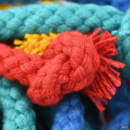 Corda de saltar 100 % algodão reciclado, com nós nas suas extremidades.  O conjunto é composto de: 6 cordas em 6 cores (amarelo, azul, laranja, vermelho, verde e violeta).  Comprimento: 3 m. Diâmetro: 8 mm.