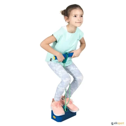 Para pular com ótimo controle. Tem uma plataforma grossa, fabricada numa peça única de borracha especial, para conseguir o máximo de ressalto e estabilidade. A parte superior, tem uma zona de textura diferente para melhor aderência. A corda é de poliéster. Dimensões: 25 x 12 x 7,6 cm. A distância do solo ao cabo rodeado de espuma é de 76 cm. Peso máximo: 60kg  - Cor: Azul