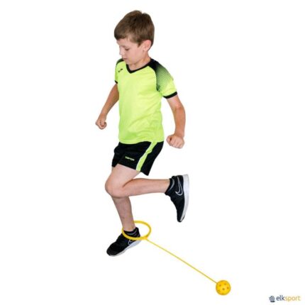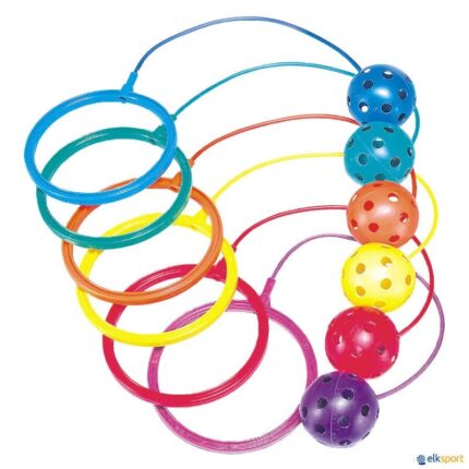 O objetivo do jogo é fazer girar a bola presa a uma perna sem que choque com a outra. Isto requer coordenação de movimentos, perceção das velocidades e grande atenção. · Diâmetro do aro: 16 cm. · Diâmetro da bola: 8 cm. Vendido à unidade ou em conjuntos de 6 bolas em 6 cores (amarelo, azul, laranja, vermelho, verde e violeta) a um preço mais económico.