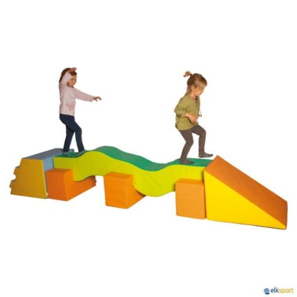 O conjunto alpino é um percurso composto por 6 formas geométricas de espuma forrada: · 1 Rampa de escalada: 65 x 60 x 50 cm · 1 Prisma ondulado: 200 x 30 x 30 cm · 3 Suportes de Prisma: 60 x 30 x 35 cm · 1 Rampa: 70 x 60 x 50 cm
