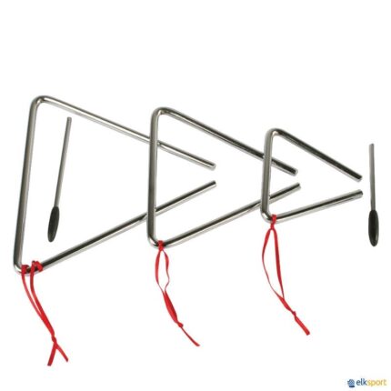 Triângulo musical, disponível em três tamanhos: · Pequeno: 10 cm · Médio: 15 cm · Grande: 20 cm