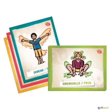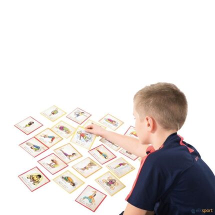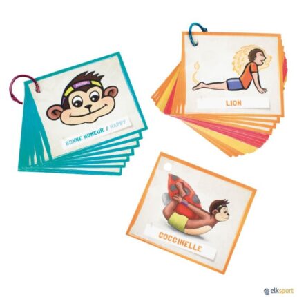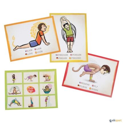 Diversão garantida convidando os alunos a reproduzir as posturas de yoga ilustradas nas fichas e a concentrarem-se. Esta é uma excelente ferramenta para professores e instrutores, sendo as fichas muito visuais e essenciais para mostrar às crianças a postura que devem trabalhar. Na frente de cada ficha é apresentada a postura e nome, e no verso a descrição da postura em 4 idiomas (inglês, francês, alemão e espanhol). Conjunto de 32 fichas em cartolina, formato A4, mostrando as posturas e 12 lâminas tipo bingo com as imagens de PedaYoga.