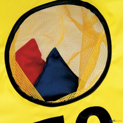Alvo de lançamento transportável com numeração impressa por baixo de cada bolso. Parte frontal em poliéster com 8 bolsos de rede. Fácil de montar. Incluí 12 saquinhos em 4 cores. · Comprimento: 100 cm. · Largura: 92 cm.