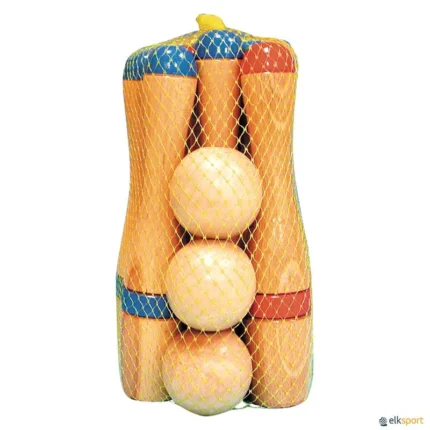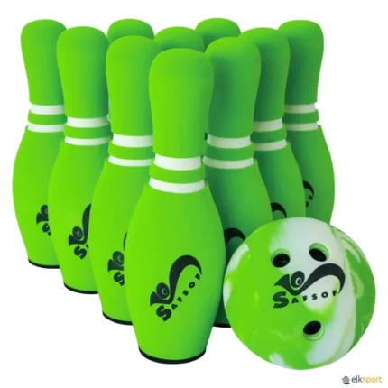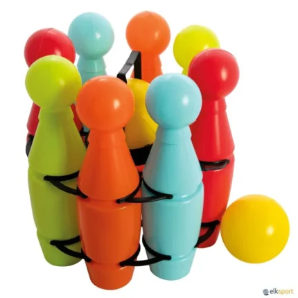 O mais parecido com o jogo real. Pinos de forma e tamanho idênticos aos oficiais, lastrados com areia para aumentar a estabilidade. A bola fabricada em PVC muito macia e com as dimensões muito próximas da bola verdadeira. Por ser macia, absorve os choques contra as paredes ou solo. Muito segura para ensinar a jogar. O conjunto é formado por: 10 pinos e 1 bola. Altura pinos: 37 cm. Peso pinos: 260 g. Peso bola: 137 g. Existe a possibilidade de adquirir uma bola sobresselente  ref J10145 BOLA EXTRA DE BOWLING SUPER para mais proatividade durante a partida. Recomendamos o  SACO TRANSPORTE DE MATERIAL para armazenar o conjunto.