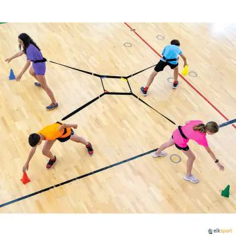 Uma nova visão de um jogo tradicional. O cinto de tração em 4 direções permite realizar um trabalho de tração para melhorar a força e a potência das pernas. Os jogadores devem puxar com força para conseguir tocar ou apanhar o cone sem que os outros jogadores o façam. Uma nova opção para os teus treinos de força em qualquer desporto, que te permitirá alcançar o estímulo muscular necessário através do jogo. Os cones fornecidos no conjunto permitem ajustar a intensidade do exercício. O kit é composto por: 1 corda com 4 cintos, 4 cones e 1 bolsa de armazenamento.