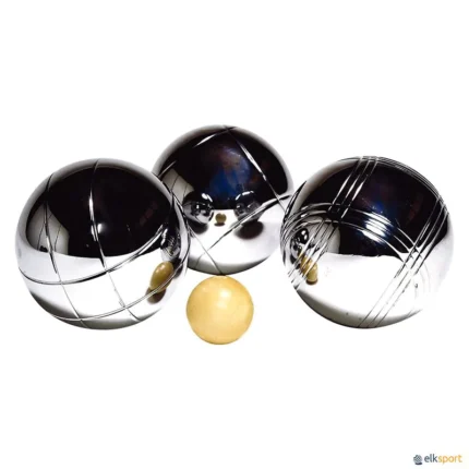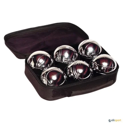 Jogo de petanca de aço. O jogo é formado por: 6 bolas, 1  bolinha e uma bolsa. Tamanho bolas: 7,3 cm de Ø. Peso: 715 g. Ver também PETANCA PLÁSTICA