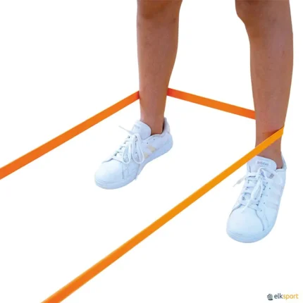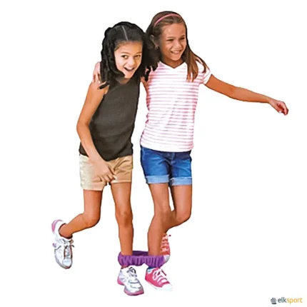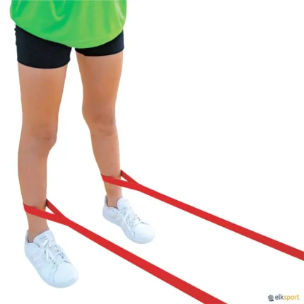 Jogo divertido, que era habitualmente jogado nos recreios das escolas pelas meninas. No entanto tem vindo a ser adotado como jogo tradicional. Estes jogos são muito importantes para desenvolver a coordenação, os saltos e a destreza nos mais jovens. Cor: Vermelho. Tamanho:  240 cm de comprimento x 2,5 cm largura. Vendido ao par. Também existe em banda contínua.