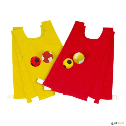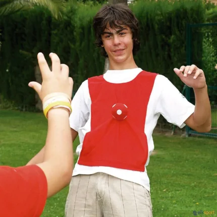 Conjunto de coletes alvo, com uma superfície exterior onde aderem as bolas de velcro. Isto possibilita muitas atividades e jogos de precisão, estáticos, ou em movimento, individualmente ou em equipas. O conjunto é formado por: 6 coletes, com duas cores (vermelho e amarelo) e 4 bolas (2 vermelhas e 2 amarelas) de consistências diferentes. Tamanho do colete: 52 x 30 cm Ha possibilidade de adquirir bolas de reposição BOLAS VELCRO 6,5 CM