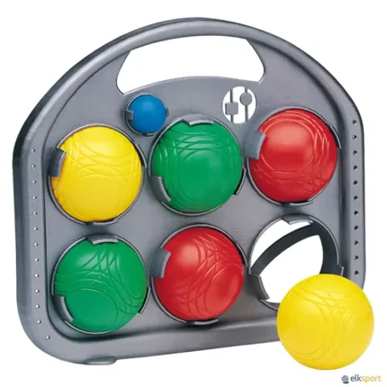 Este jogo de petanca converte qualquer superfície num campo de petanca. Não importa a dureza do chão, as bolas absorvem bem os impactos. Quando se lançam as bolas com o girar de punho para que as bolas retrocedam, elas praticamente param no local para onde foram lançadas. A sua cobertura exterior em material rugoso faz com que as bolas tenham uma textura muito agradável quando manipulada e facilita a aderência. Jogo adequado para pessoas com necessidades especiais. Bolas de material sintético e costuradas à mão, revestidas de PVC  espumoso e interior em PE e areia. Tamanho das bolas: 10,1 cm ø. Tamanho do boliche: 7,6 cm ø. Ver também PETANCA PLÁSTICA  e  PETANCA DE AÇO.