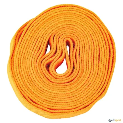 Jogo divertido, que era habitualmente jogado nos recreios das escolas pelas meninas. No entanto tem vindo a ser adotado como jogo tradicional. Estes jogos são muito importantes para desenvolver a coordenação, os saltos e a destreza nos mais jovens. Dimensões: 500 x 2 cm. Cor: laranja. Também existe em lote de 2 bandas com pega JOGO DO ELÁSTICO.