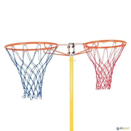 Cesto Duplo é outra possibilidade que se adapta ao sistema da Grande Base. Permite trabalhar habilidades de lançamento de forma progressiva, graças ao poste telescópico de 1,15 m a 2,44 m. Também pode utilizar-se no meio do campo para trabalhar com 2 mini campos, etc. Características: Cesto duplo: 2 aros de tamanhos diferentes, mais 2 redes, mais 1 peça de união dos aros ao poste. Não inclui nem poste nem a base. Diâmetro interior dos aros: Grande 56 cm.  Pequeno 46 cm. Existe a possibilidade de adquirir o conjunto completo composto por: 2 cestos, 1 peça de união, 1 poste, 1 base : CESTO COMPLETO Ou os componentes em separado : – Só POSTE AJUSTÁVEL – Só GRANDE BASE