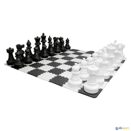 Xadrez gigante com 3 opções de tamanho de tabuleiro e peões : Tabuleiro xadrez nylon 1,55 x 1,55 m. Tabuleiro xadrez nylon 1,90 x 1,90 m. Tabuleiro xadrez nylon 2,70 x 2,70 m. Com espias de aço para colocar nos olhais  e fixar no solo de relva. Ver PEÕES DE XADREZ GIGANTEPEÕES DE DAMA GIGANTE - altura do rei 31 x Ø 11,5 cm - altura do rei 40 x Ø 16,5 cm - altura do rei 63 x Ø 24 cm. Ver também o tabuleiro em placas de encaixar em EVA : TABULEIRO DE XADREZ OU DAMAS EVA e Damas gigantes, ver a referência  J10578