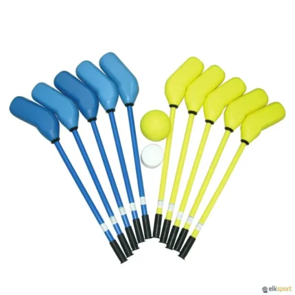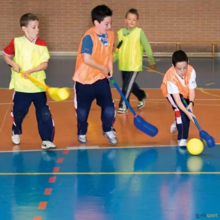 Jogo de Hóquei com a lâmina dos sticks em espuma forrada. O jogo de hóquei super suave (SS) é composto por: 10 sticks SS (5 amarelos e 5 azuis), 1 bola de espuma e 1 disco de espuma. Tamanho stick: 90 cm de comprimento. Bola: 14 cm de Ø. Existe ainda a possibilidade de adquirir sticks SS de reposição STICKS SUPER SUAVE :  assim como a bola J10061 BOLA DE MAZABALL. Para armazenar e transportar, recomendamos o nosso  SACO JUMBO.