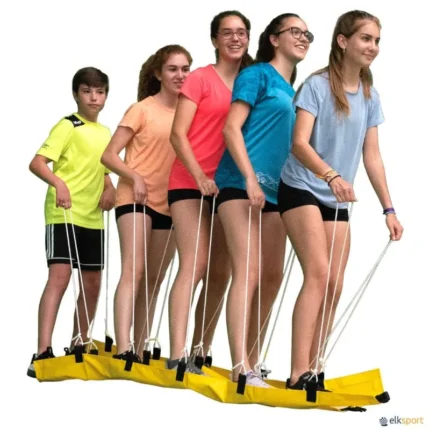Desenhados para desenvolver a cooperação e o equilíbrio. Pode ser utilizado com grupos de 5 crianças. Estas devem comunicar e trabalhar em conjunto com o objetivo de se deslocarem em simultâneo. Estes andadeiros cooperativos, podem-se atar e desatar facilmente ao tornozelo, mediante um fecho de velcro. Adequado para ser utilizado tanto no interior como no exterior. Tamanho: 150 x 5 cm. Ver também SKIS COOPERATIVOS.