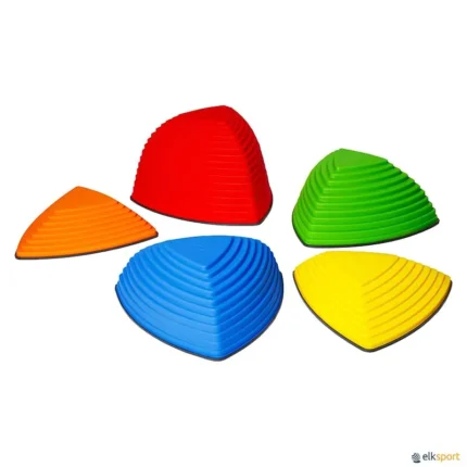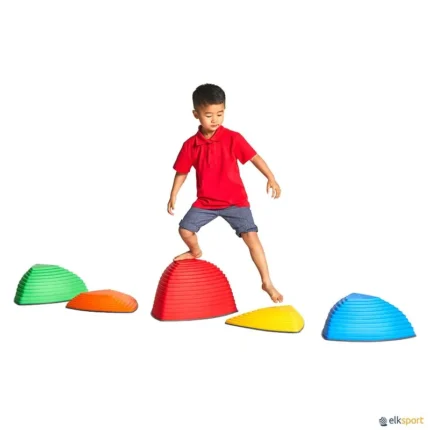 Conjunto de 5 colinas: de alturas diferentes, que fará com que as crianças tenham de saltar de uma para a outra. Permite o desenvolvimento da noção visual da distância, familiarizar com o equilíbrio em altura. Base antiderrapante e estável. Formas com 3 alturas diferentes: 8,5 cm - 17 cm e 25,5 cm. Ver também o conjunto de PEDRAS DE RIO e a pedra com molas PEDRA DE RIO COM MOLAS para desenvolver atividades mais dinâmicas e estimulantes.