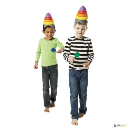Com este Chapéu Palhaço, não é fácil deslocar-se e manter o equilíbrio, sem deixar cair nada da cabeça. É constituído por várias peças. Para manter o chapéu em cima da cabeço enquanto se move, é necessária concentração e equilíbrio. Ajuda a desenvolver o conhecimento do seu próprio corpo, e o controlo postural. Podemos realizar atividades individuais, ou em grupo realizando atividades competitivas. Este chapéu com peças suaves, foi pensado para ser usado por crianças, mas pode no entanto servir nos exercícios posturais com pessoas mais maduras. O conjunto contém: 5 peças de borracha e espuma EVA. Dimensões: 14,5 cm Ø. Altura: 18 cm. Idade: 3-9 anos.