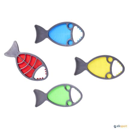 O design colorido destes peixes chama a atenção e desperta a imaginação, inspirando as crianças pequenas a participar em jogos de faz-de-conta com outras. Os Peixes Brilhantes Gonge têm um núcleo de aço que lhes permite ser apanhados com a peça magnética da cana de pesca. Os Peixes Brilhantes não incluem a CANA DE PESCA. A sua borda grossa em borracha torna-os confortáveis e seguros para crianças de todas as idades. A utilização da cana para apanhar o peixe permite às crianças aperfeiçoar a função motora cognitiva e de perceção, além de as ajudar a melhorar o equilíbrio e a coordenação óculo-manual. · O conjunto Peixes Brilhantes é composto por: 4 peixes em 4 cores (amarelo, azul, vermelho e verde). · Medidas dos peixes: 16 x 6 x 1,5 cm. · Peso do conjunto: 350 g (87,5 g cada peixe). · Idade de utilização: 2-5 anos.