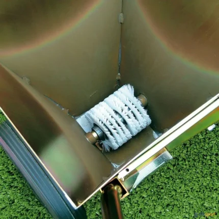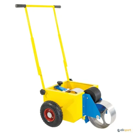 Construído em aço revestido com tinta epóxi para aumentar a durabilidade. Rodas maciças com 25 cm ø. Largura sempre exata da linha (10 cm). Inclui sistema de drenagem para esvaziar o depósito. Pegas de 84 cm de comprimento com ângulo ajustável que permite colocá-lo em diferentes alturas. É entregue desmontado. Capacidade do depósito: 13,8 litros (aprox.). Possibilidade de substituir o rolo, ver