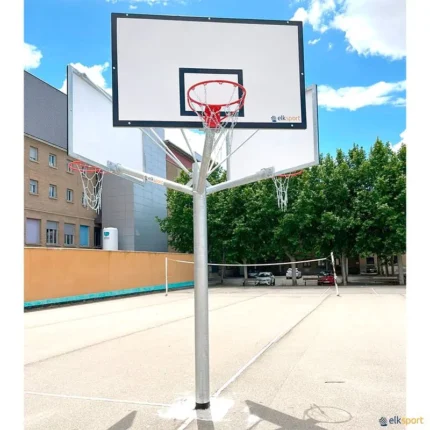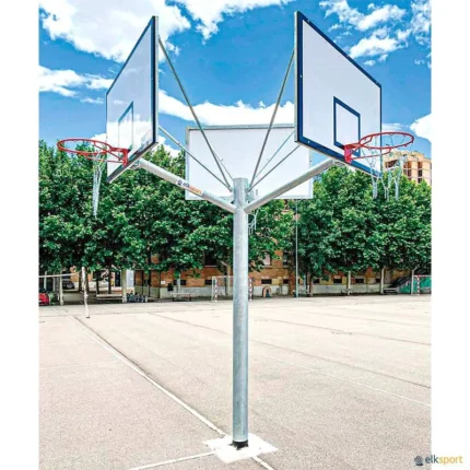 Poste com 3 tabuleiros em uma única estrutura, perfeita para otimizar o espaço e permitir que vários jogadores pratiquem ou joguem partidas de 3 contra 3 simultaneamente. Fabricada com um poste central em tubo redondo de 3,5 mm de espessura, tabelas de fibra de vidro e um avanço de 1,2 m. Fixação ao solo com âncoras de haste inclusas. Inclui redes de polipropileno. Entregue montado; prever custo de transporte por MATERIAL VOLUMOSO. Dimensões: - Tabuleiro: 180 cm x 105 cm - Altura do cesto / 305 cm. Completar com : PROTEÇÃO DE POSTE REDONDA