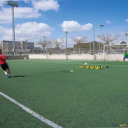 Rede composta por diferentes peças, ideal para o treino de reflexos de guarda-redes, pois desvia e altera a velocidade da bola após o remate, tornando-a imprevisível. É fornecida com saco de transporte e 4 espias para relva natural. Para relva sintética, podem ser utilizados pesos de areia (não incluídos). Dimensões: 275 x 185 cm.