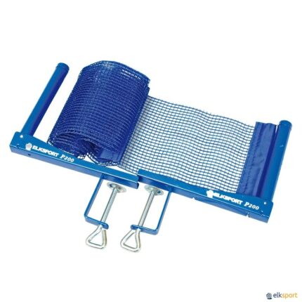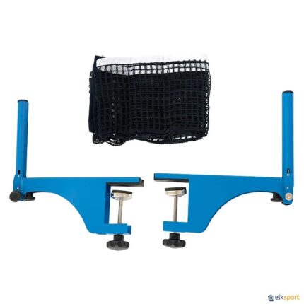 Conjunto de suporte metálico e rede regulamentar de algodão de alta qualidade para ténis de mesa. Compatível com tampos de mesa com espessura até 6 cm. Dimensões: 175 x 15 cm.
