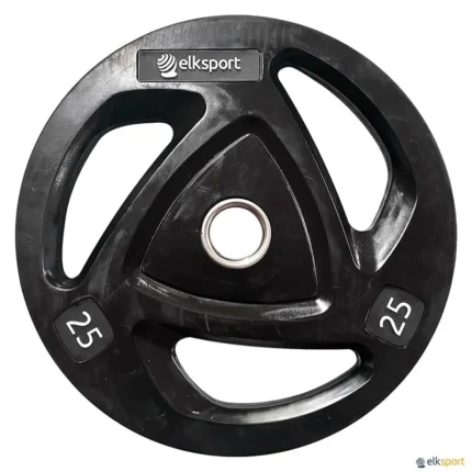 Disco olímpico de ferro revestido de borracha de alta qualidade. A partir de 5 kg vem com 3 pegas para facilitar o manuseio e aumentar suas possibilidades de uso sem barra. Seu anel central é feito de aço e tem diâmetro de 50 mm, compatível com as barras olímpicas. . Disponível em 7 Pesos: 1,25 kg ; 2,5 kg ; 5 kg ; 10 kg ; 15 kg ; 20 kg ; 25 kg Portes extra a partir de 20 kg.