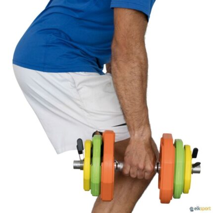 Para um treino eficaz de Body Pump e exercícios de força muscular. O conjunto de Body Pump oferece-lhe a possibilidade de variar a carga em função do trabalho a realizar. Estes discos têm uma dupla utilização: como halteres ergonómicos, graças aos 2 apoios simétricos que permitem passá-los de uma mão para a outra, e como discos ajustáveis de barra de 30 mm de ø. O conjunto Body Pump de 19,5 kg é composto por: · Barra de aço: 140 cm de comprimento / 2 kg de peso / 30 mm de diâmetro. · 2 Discos Body Pump de 1,25 kg. · 2 Discos Body Pump de 2,5 kg. · 2 Discos Body Pump de 5 kg. · 2 Molas de Bloqueio.