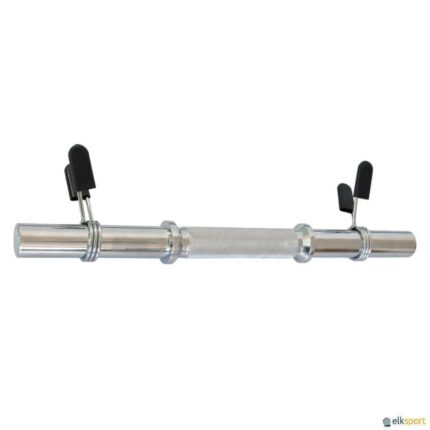 Mini barra de aço cromado para discos de 30 mm de ø com zona de pega antiderrapante, inclui molas de bloqueio . Ideal Para exercícios de Body Pump e treinos de força. Pode ser usada com os discos de Body Pump. . Comprimento: 40 cm. · Peso: 2 kg.