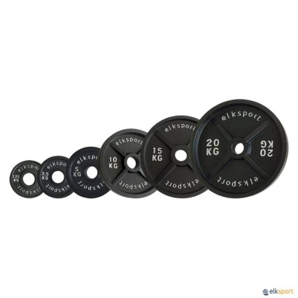 Disco olímpico clássico de ferro fundido, simples mas resistente, maquinado para garantir uma menor tolerância de peso e uma superfície de melhor qualidade. O seu aro central tem um diâmetro de 50 mm compatível com barras olímpicas. · Disponível em 6 Pesos: 1,25 kg / 2,5 kg / 5 kg / 10 kg / 15 kg / 20 kg