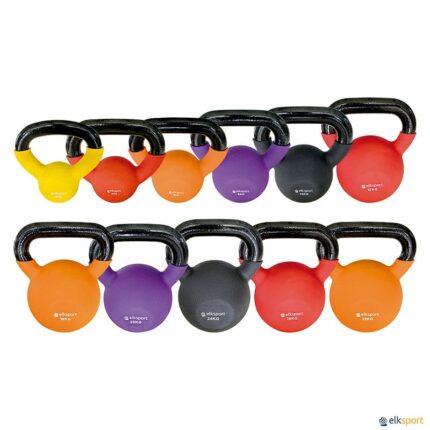 Kettlebells fabricadas em ferro revestido a neopreno, um material agradável ao toque, muito confortável e bastante duradouro. Cada peso tem uma cor distinta, o que facilita a escolha da kettlebell durante a aula. · 11 Pesos disponíveis: 2 kg / 4 kg / 6 kg / 8 kg / 10 kg / 12 kg / 16 kg / 20 kg / 24 kg / 28 kg / 32 kg. O treino com kettlebells ou pesos russos proporciona uma melhoria da força, potência explosiva, resistência, coordenação, equilíbrio, flexibilidade e prevenção/reabilitação de lesões em tempo recorde. A sua dinâmica de movimento é excecional, já que a carga das kettlebells varia constantemente, fazendo com que não trabalhes apenas um grupo muscular de cada vez, mas sim várias cadeias musculares com um único exercício.