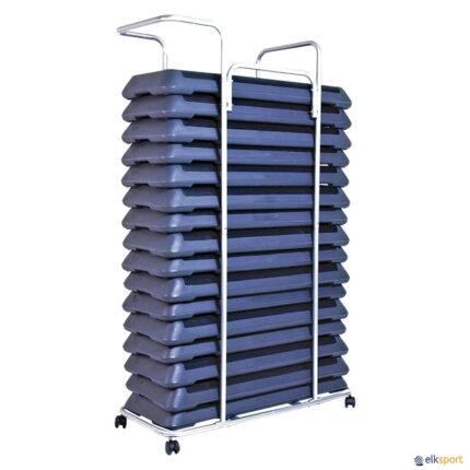 Móvel fabricado em aço para armazenar e transportar steps grandes. Adequado para as plataformas sem pés (não incluídas) do step profissional. Equipado com 4 rodas de 7,6 cm de diâmetro, 2 com travão e 2 sem travão. Características do móvel para plataformas do step profissional: · Capacidade: 18 plataformas. · Comprimento: 115,5 cm. · Largura: 47,5 cm. · Altura: 186,5 cm. · Peso: 21 kg.