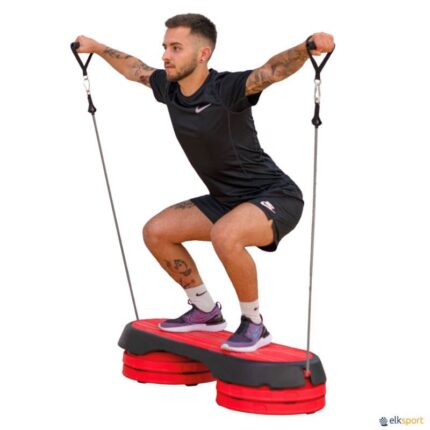 Step compacto e leve com superfície antiderrapante. Fabricado em polipropileno, o que lhe confere grande resistência e amortecimento, graças à flexibilidade da sua plataforma. O seu design prático e profissional permite-lhe adaptar-se perfeitamente às aulas de grupo. É fornecido com 4 pés para ajustar a diferentes alturas e 2 elásticos tubulares, que ampliam as suas possibilidades de treino. Tanto os pés como os elásticos podem ser montados e desmontados facilmente. Características do Step de Aeróbica Premium: · Cor: vermelho e preto. · Comprimento: 108 cm. · Largura: 38 cm. · Altura sem pés: 10 cm. · Altura com pés: 20 cm.